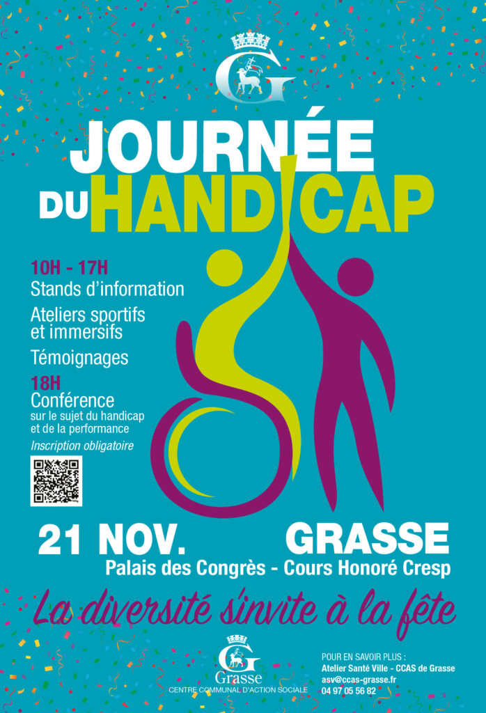 Le vendredi 21 novembre, la Ville de Grasse et son Centre Communal d’Action Sociale organisent la Journée du Handicap sur le thème » La diversité s’invite à la fête « . Au Palais des Congrès et sur le Cours Honoré Cresp, habitants, associations, professionnels et institutions sont conviés à une journée d’échanges, d’initiations et d’informations, placée […]